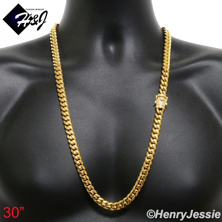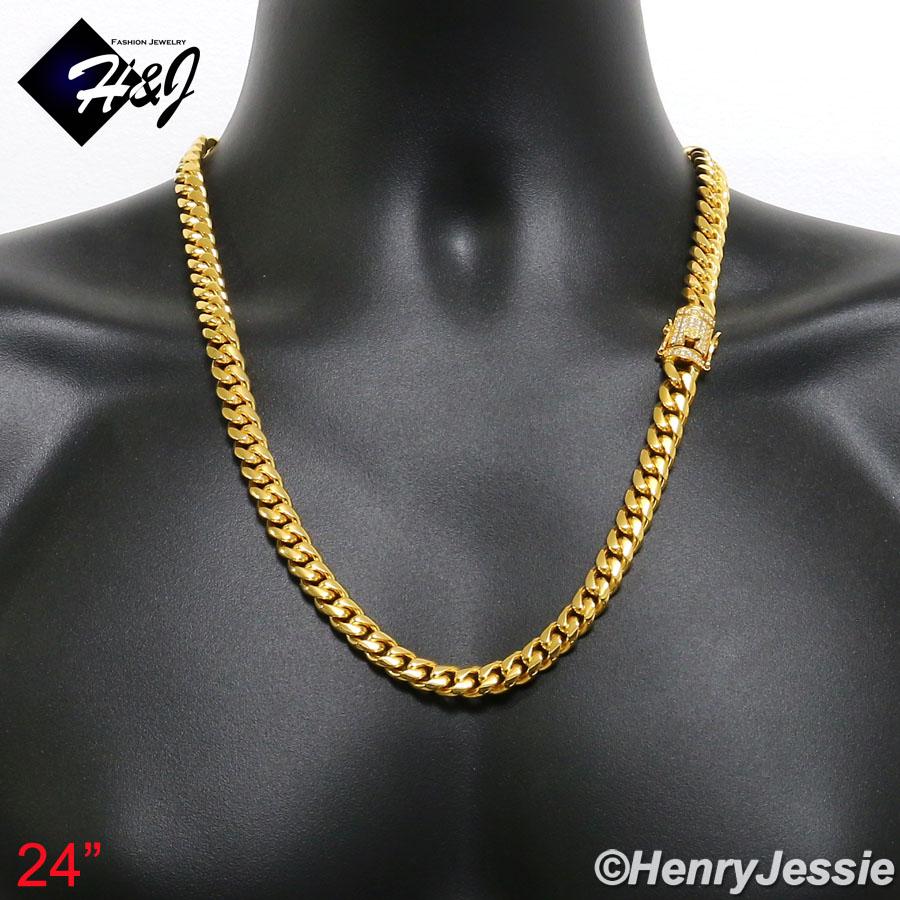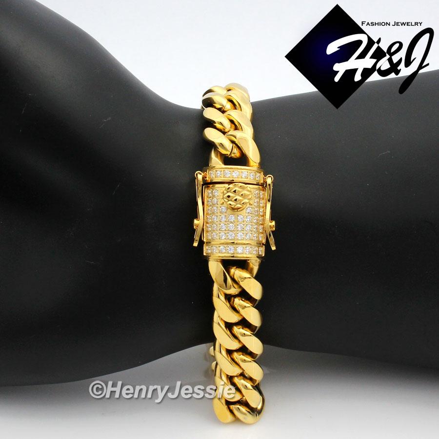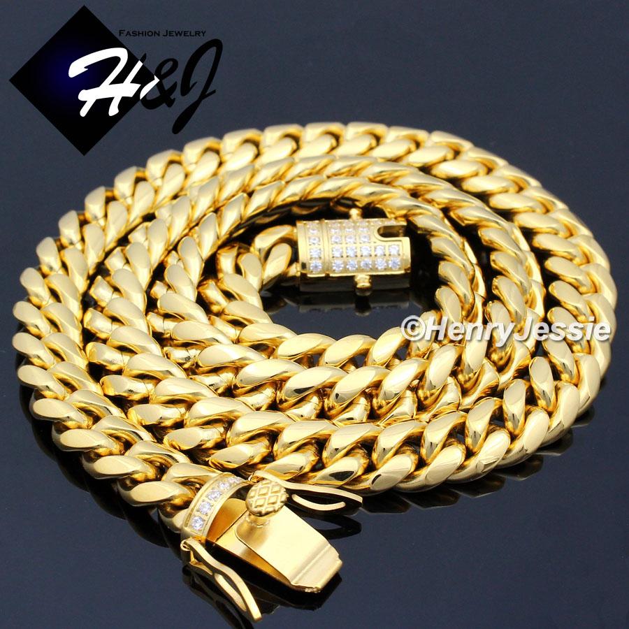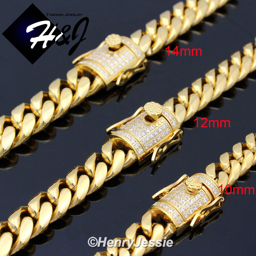 > Stainless Steel > Men > Necklaces > 7.5"-40"MEN Stainless Steel 10mm/12mm/14mm Gold Diamond Miami Cuban Curb Chain Bracelet Necklace*GN158