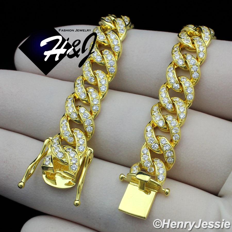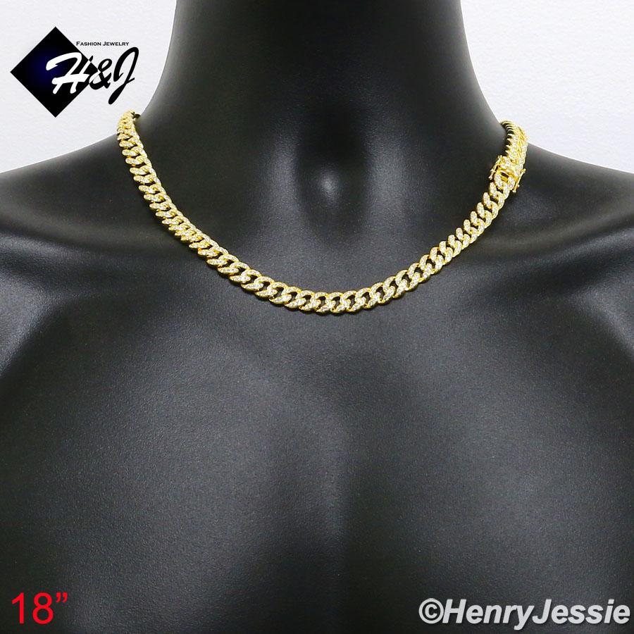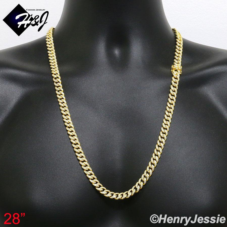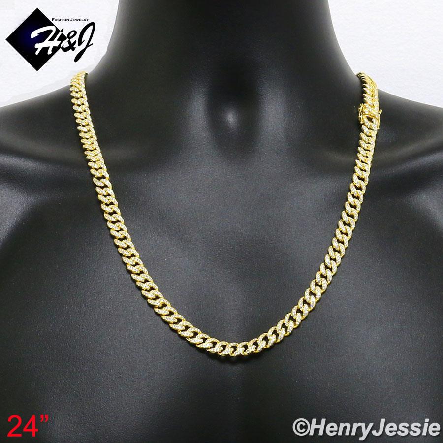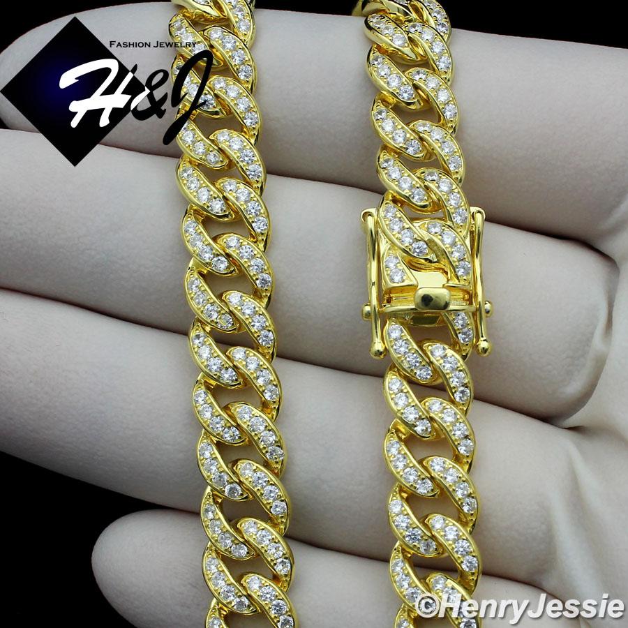 > Sterling Silver > Men > Necklaces > 18-30"MEN 925 STERLING SILVER 8MM ICED BLING LAB DIAMOND GOLD MIAMI CUBAN CURB LINK CHAIN NECKLACE*GN11