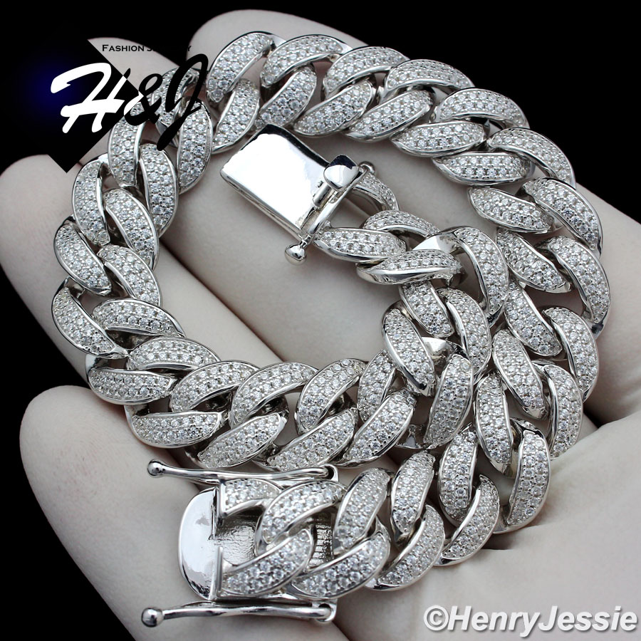 > Sterling Silver > Men > Bracelets > 8.5"MEN 925 STERLING SILVER 12MM ICED BLING LAB DIAMOND MIAMI CUBAN CURB LINK CHAIN NECKLACE*SB12