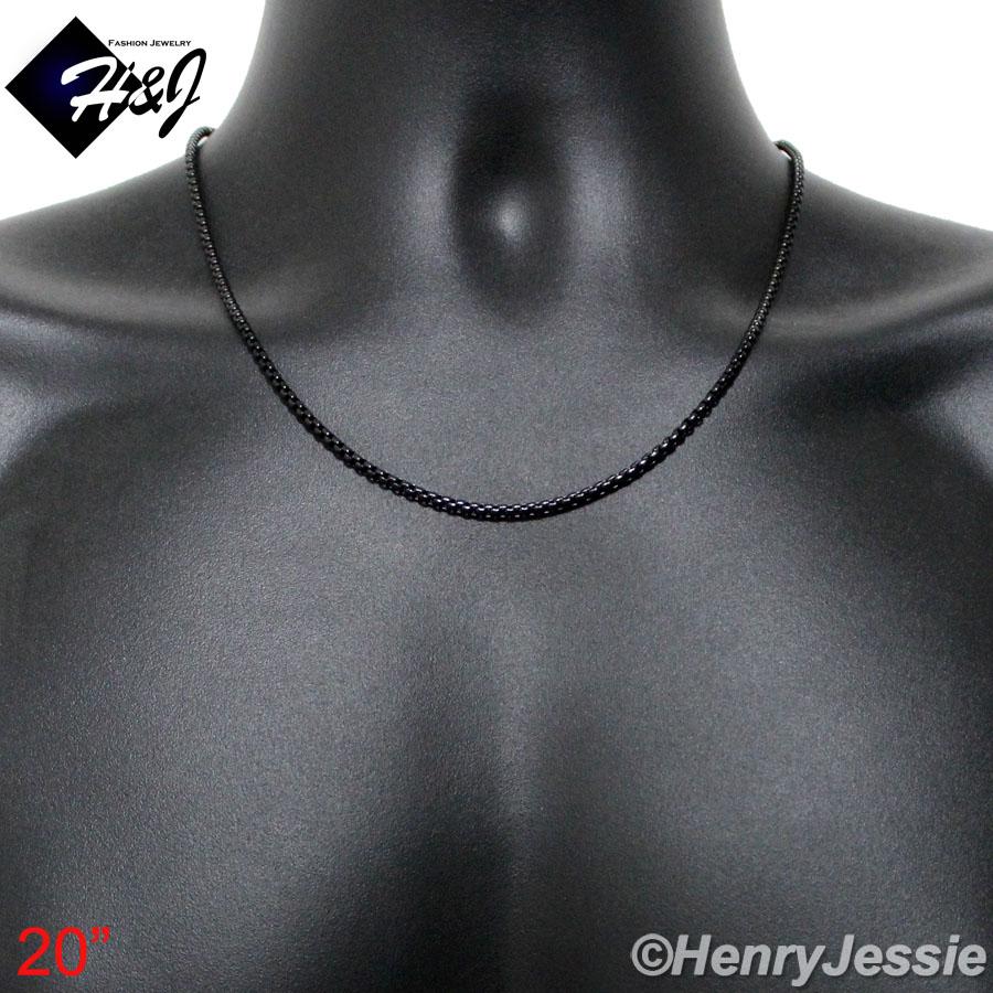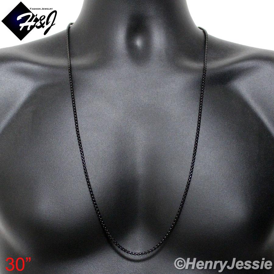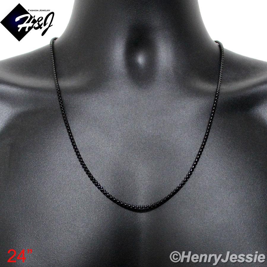 > Stainless Steel > Men > Necklaces > 16"-40"Men's Women's Stainless Steel 3mm Black Smooth Box Link Chain Necklace*BN120