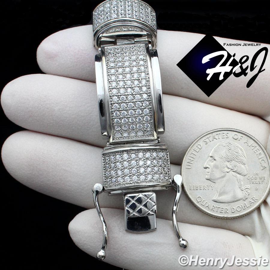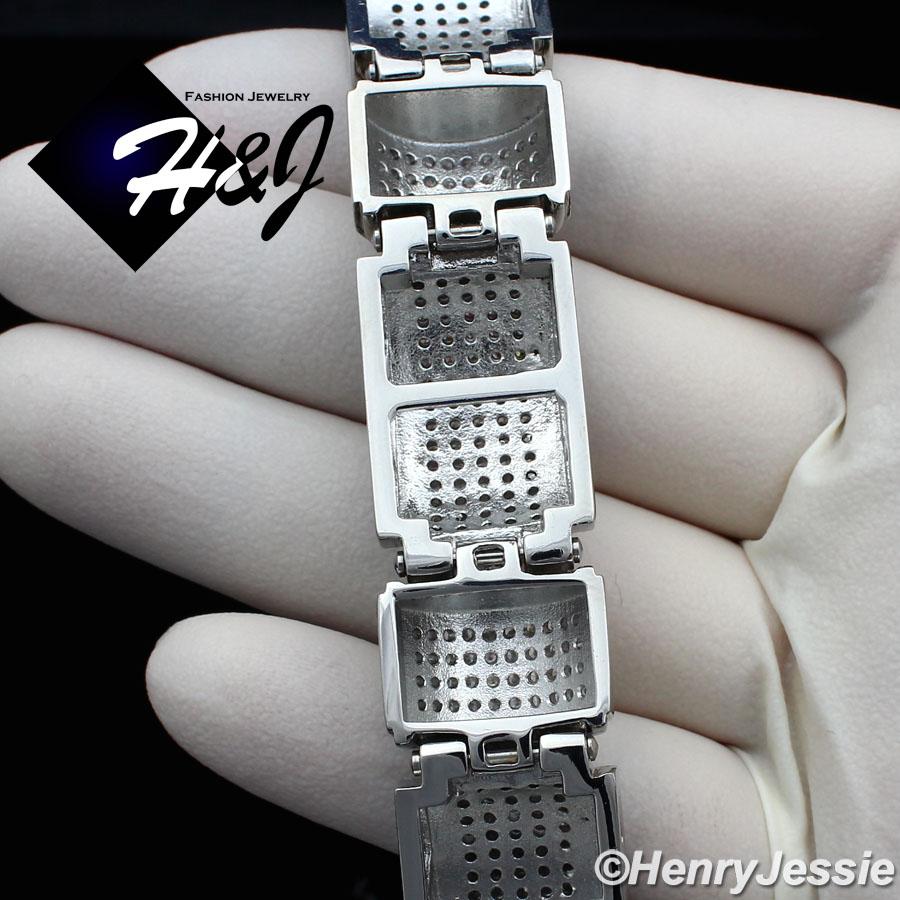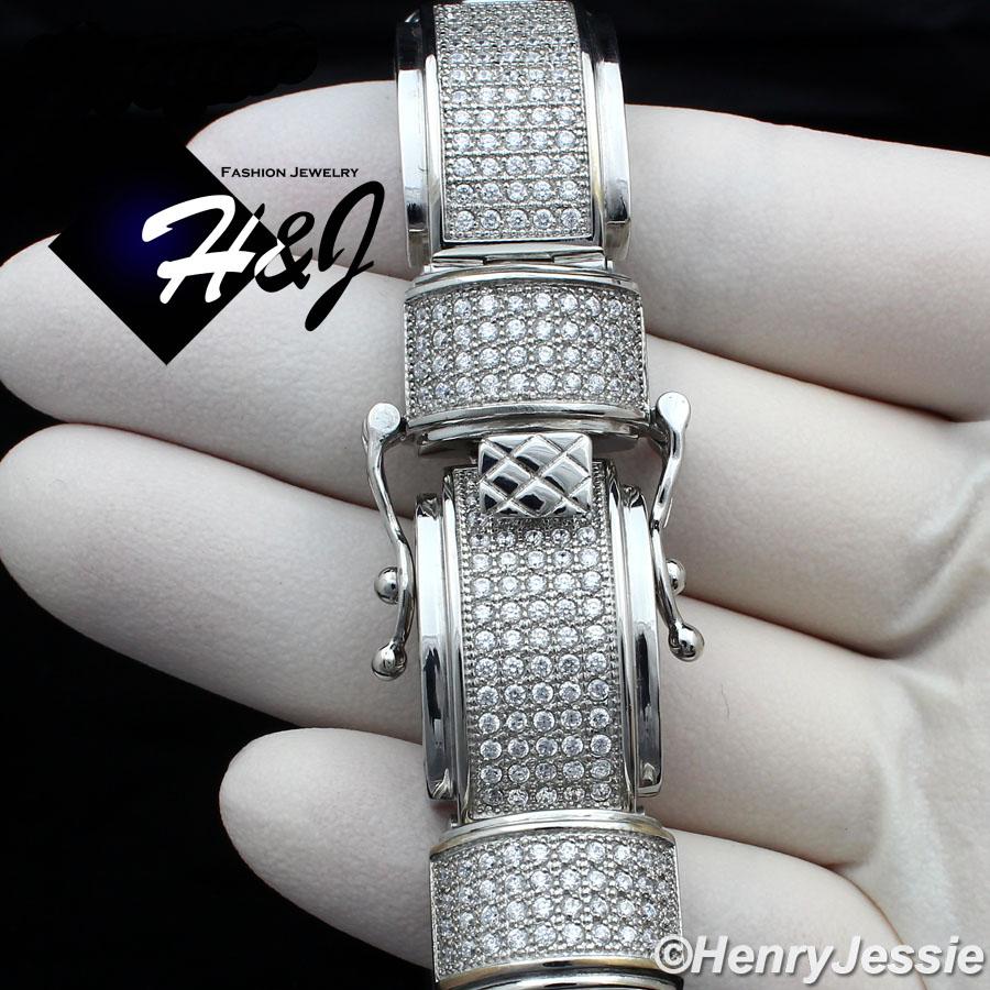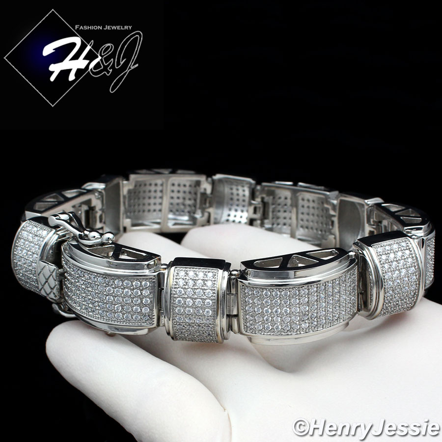 > Stainless Steel > Men > Bracelets > 9.5"MEN 316L STAINLESS STEEL LAB DIAMOND ICED BLING WIDE SILVER BRACELET*IB4