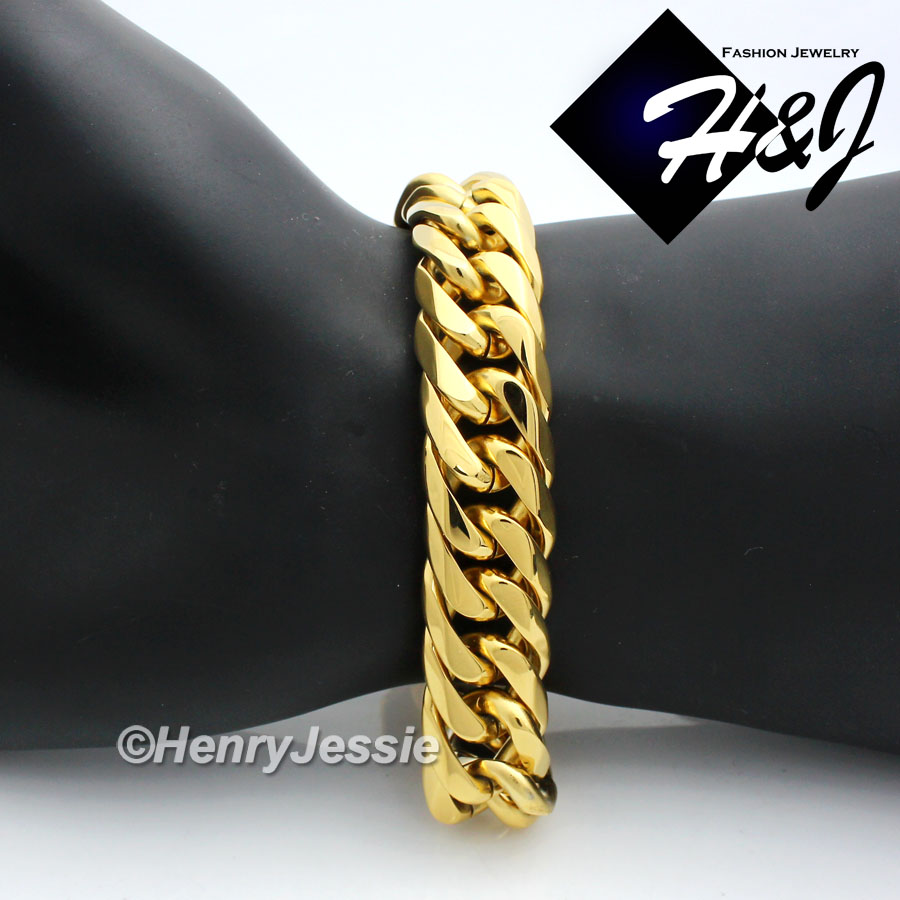 > Stainless Steel > Men > Bracelets > 9"MEN's Stainless Steel HEAVY WIDE 16x5mm Gold Cuban Curb Link Chain Bracelet