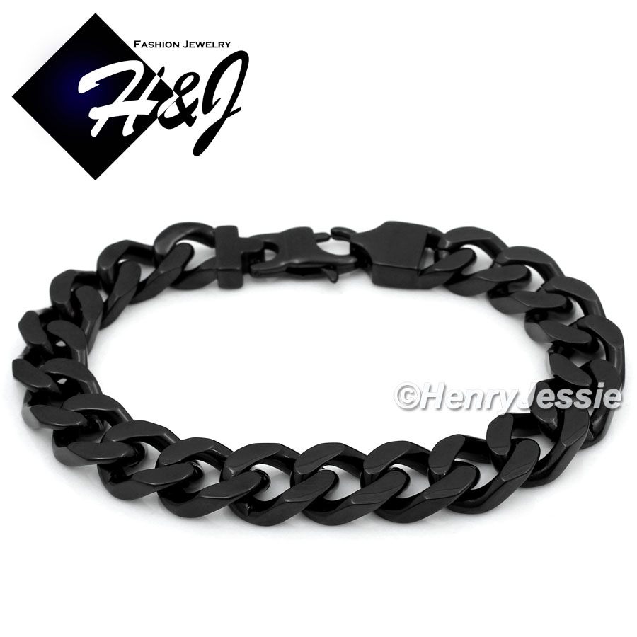 > Stainless Steel > Men > Bracelets > 8.5"MEN's Stainless Steel HEAVY WIDE 11x5mm Black Cuban Curb Chain Bracelet