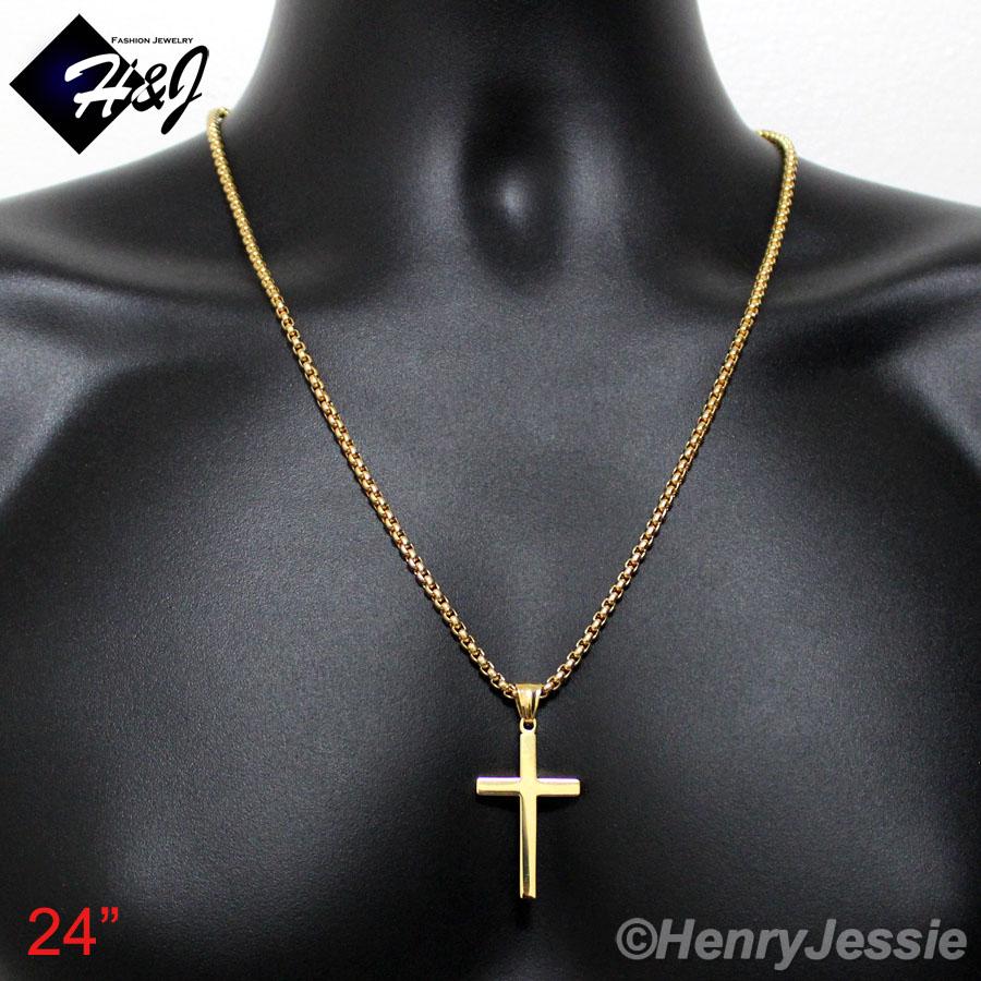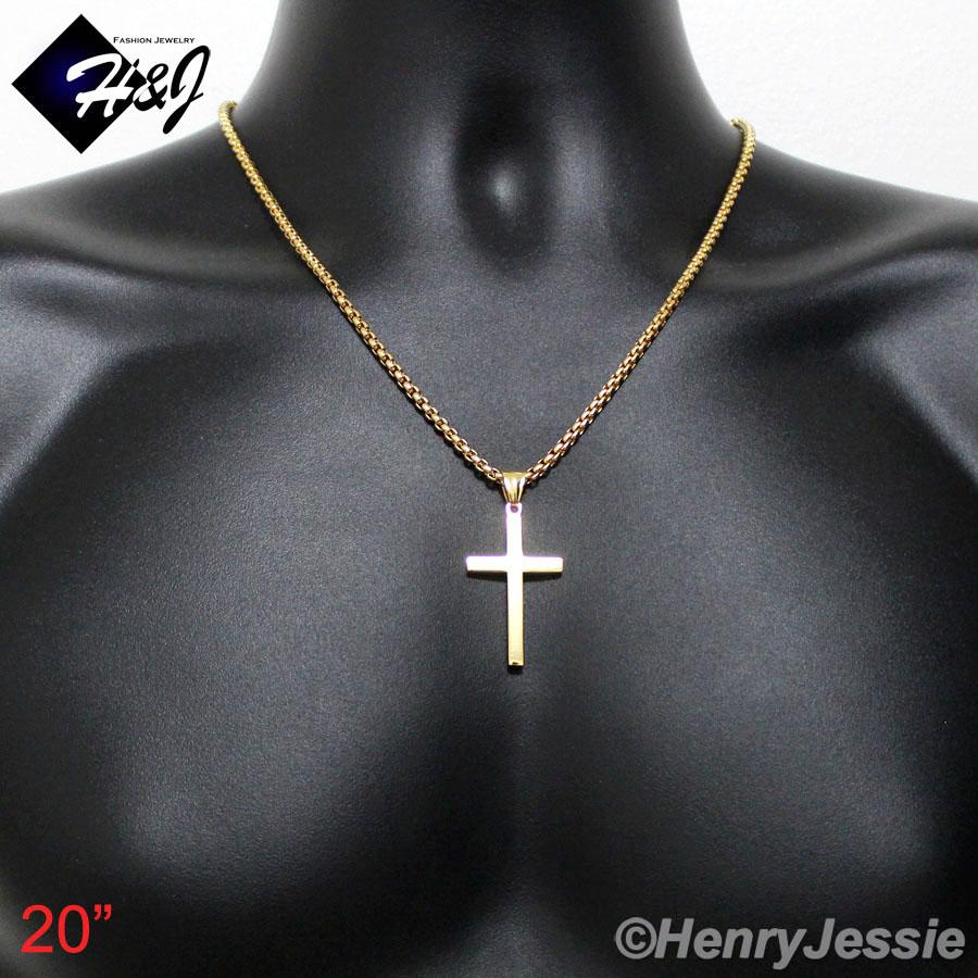 > Stainless Steel > Men > Necklace Pendant SETS > 18-36"MEN Stainless Steel 3mm Gold Smooth Box Chain Necklace Plain Simple Cross Pendant*GP29