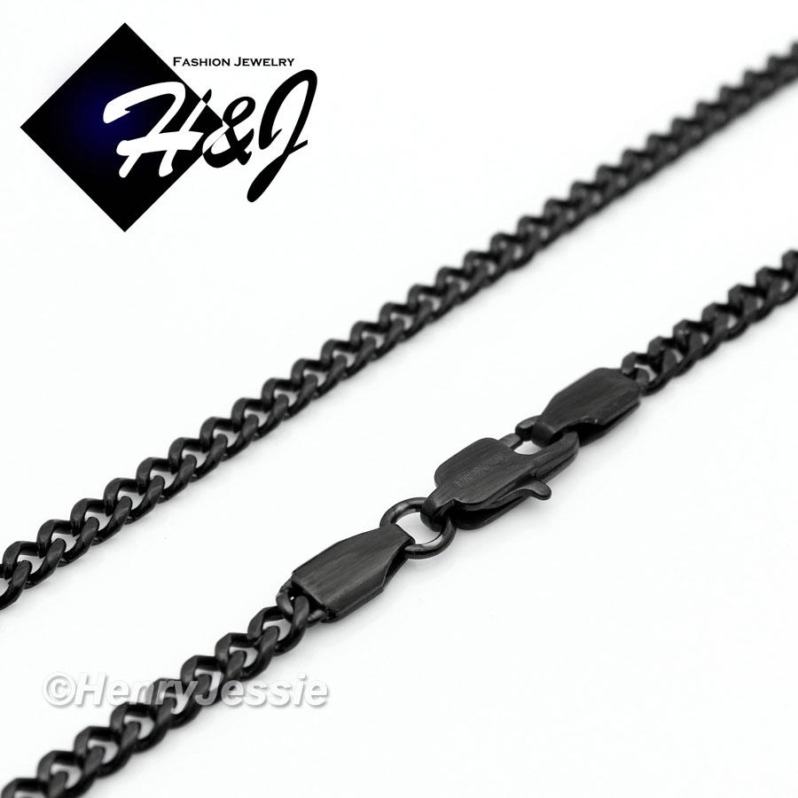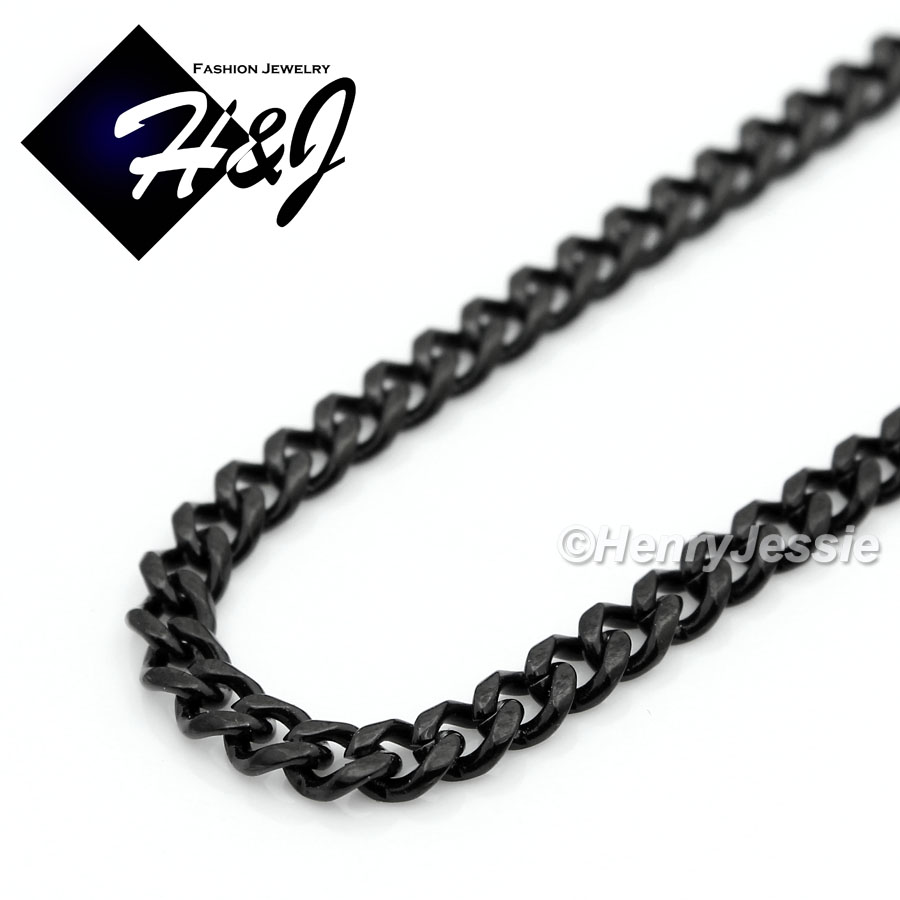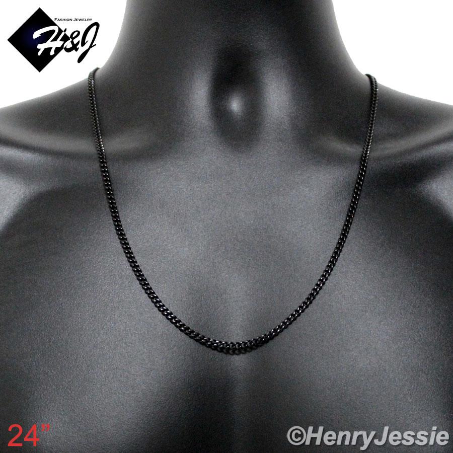 > Stainless Steel > Men > Necklaces > 16-36"MEN WOMEN Stainless Steel 3mm Black Miami Cuban Curb Link Chain Necklace*BN133