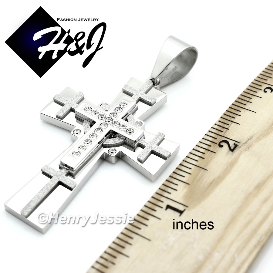 > Stainless Steel > Men > Pendants > MEN Stainless Steel Silver Matte Glitter Finished CZ Stone Cross Charm Pendant*N7