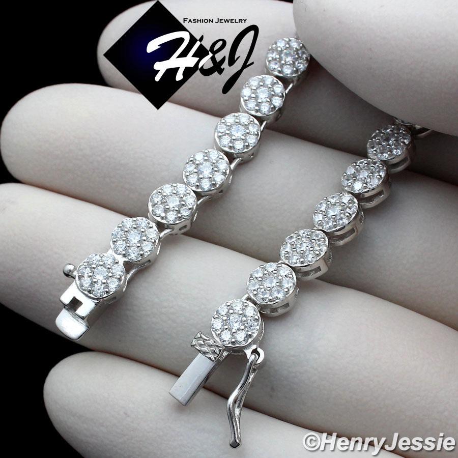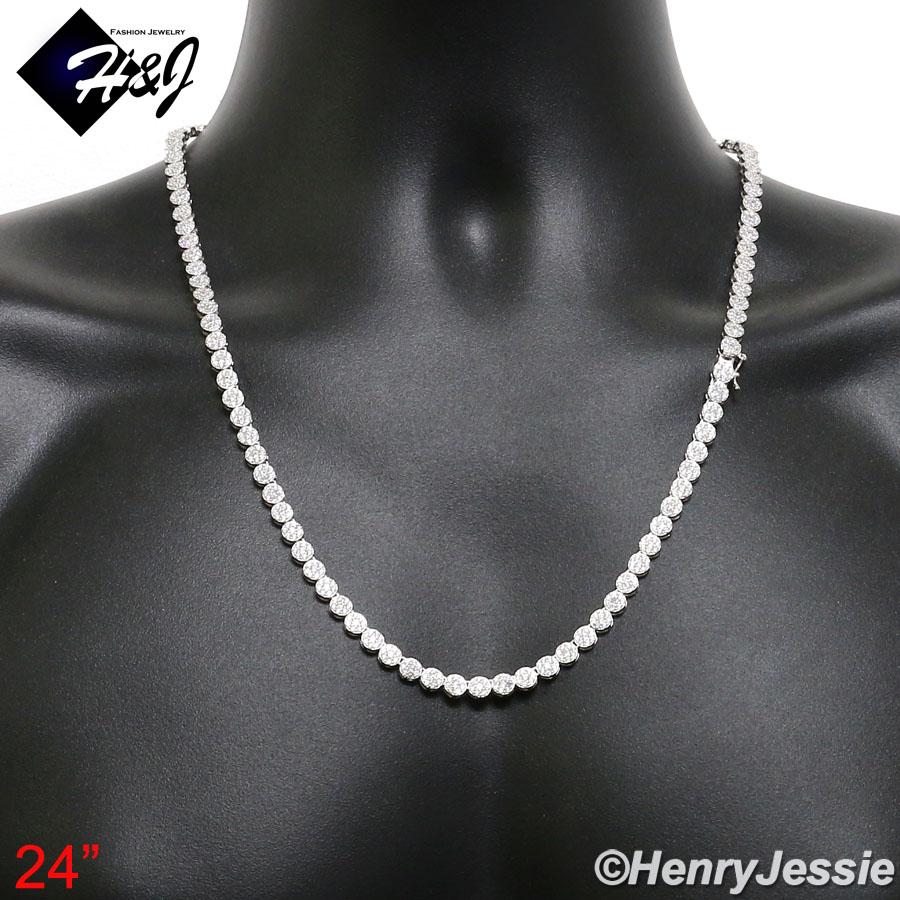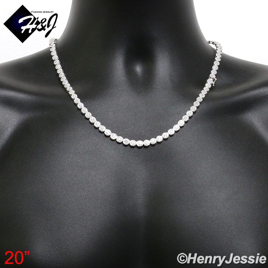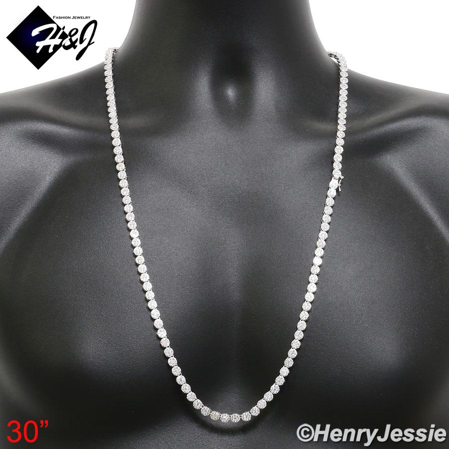 > Sterling Silver > Men > Necklaces > 18-30"MEN 925 STERLING SILVER 5MM ICED BLING 1 ROW FLOWER CLUSTER CHAIN NECKLACE*SN15
