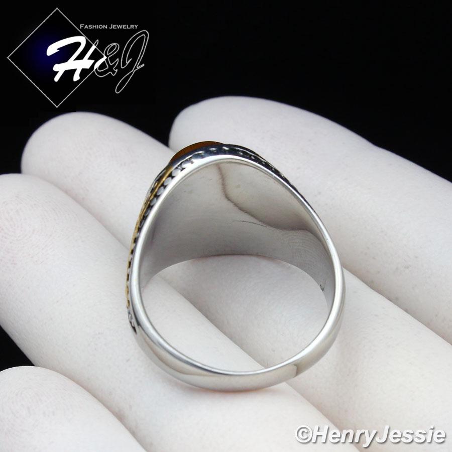 > Stainless Steel > Men > Rings > MEN's Stainless Steel Oval Black Onyx Gold/Silver Ring Size 8-13*BR115