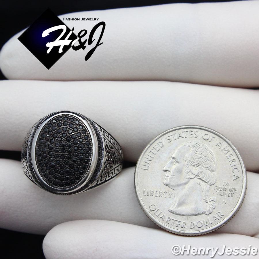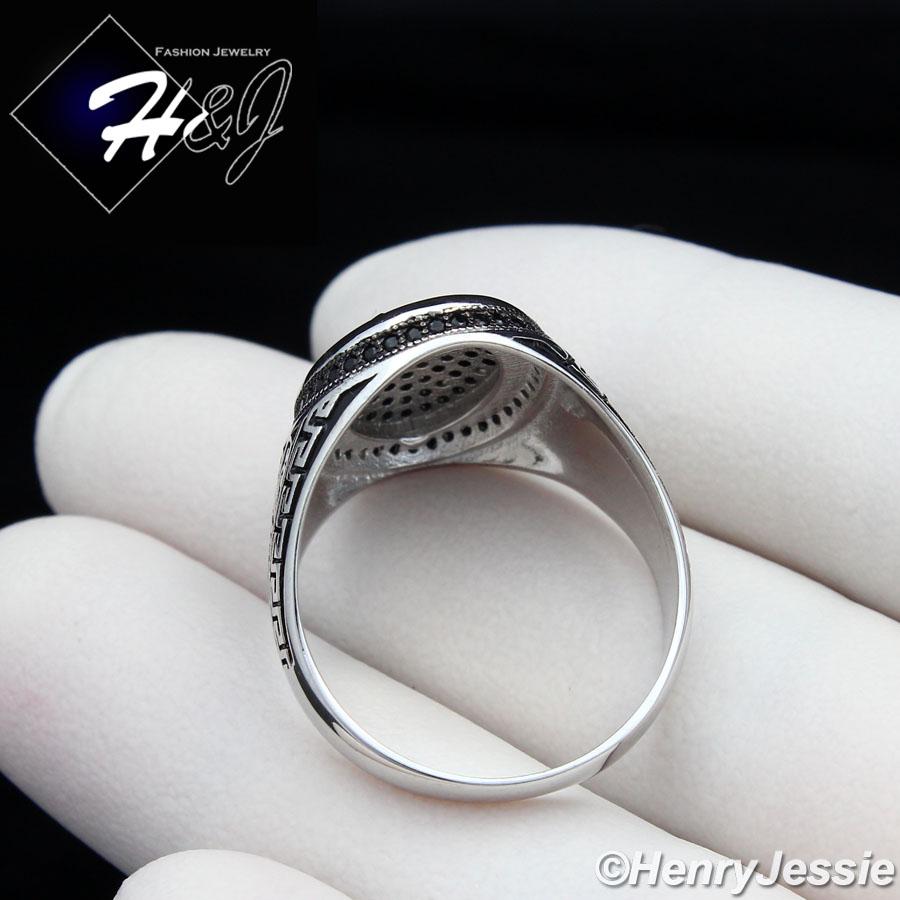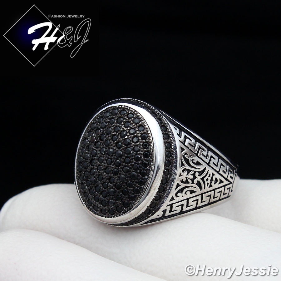 > Sterling Silver > Men > Rings > MEN 925 STERLING SILVER BLACK LAB DIAMOND GREEK KEY OVAL RING*SR73
