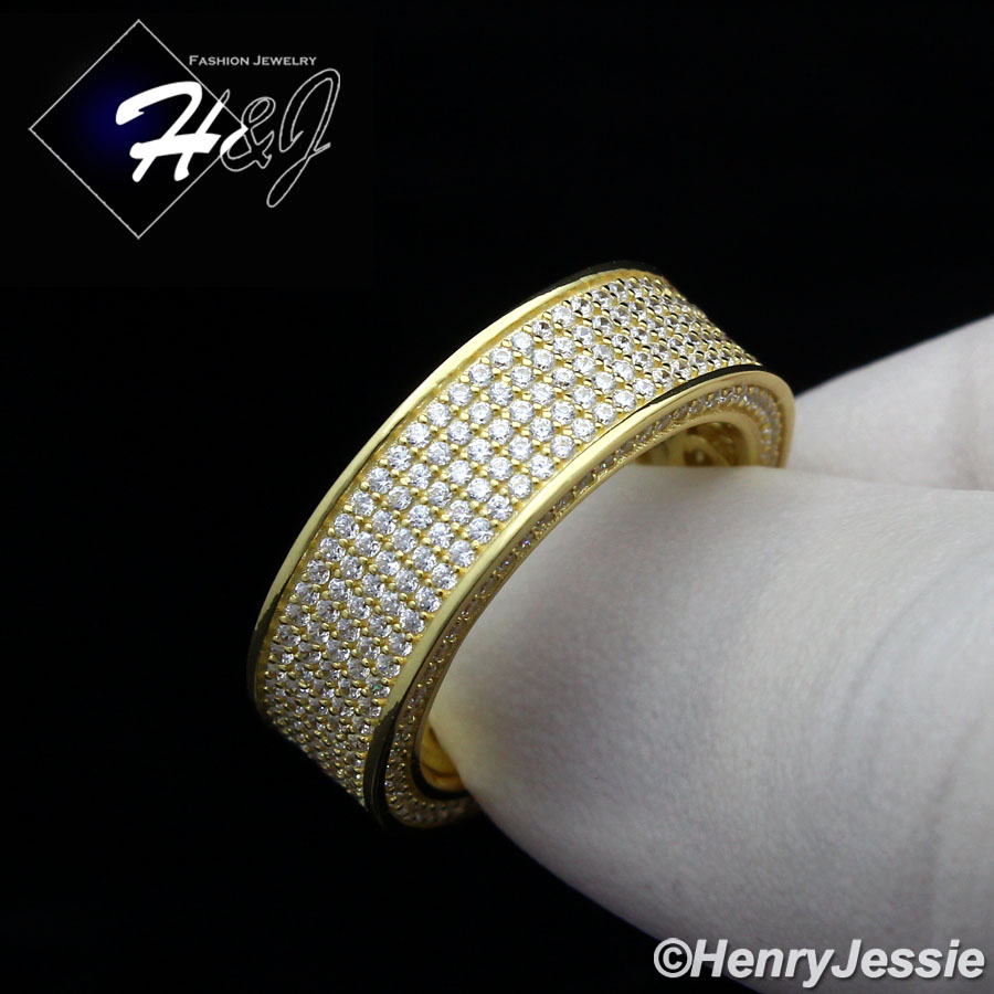 > Sterling Silver > Women > Rings > MEN WOMEN 925 STERLING SILVER FULL LAB DIAMOND ICED BLING GOLD WEDDING BAND RING*GR80