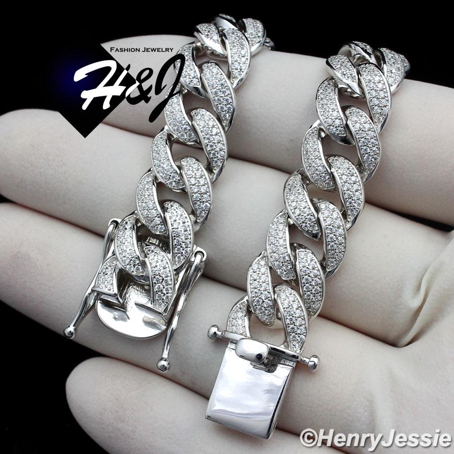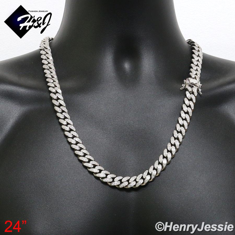 > Sterling Silver > Men > Necklaces > 18"20"24"MEN 925 STERLING SILVER 12MM ICED BLING LAB DIAMOND MIAMI CUBAN CURB LINK CHAIN NECKLACE*SN12