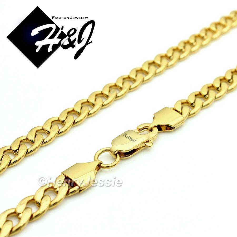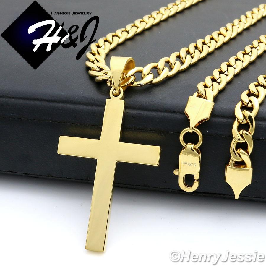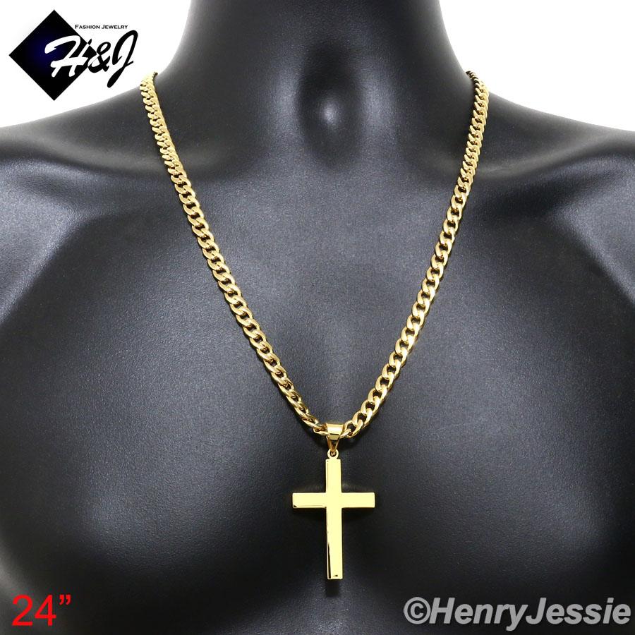 > Stainless Steel > Men > Necklace Bracelet Pendant > 24"MEN Stainless Steel 7mm Gold Cuban Curb Necklace Bracelet Plain Cross Pendant*GP64