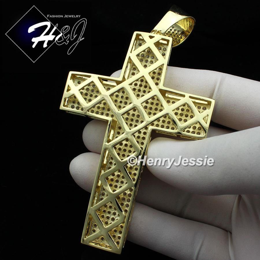 > Fashion Jewelry > Men > Pendants > MEN 14K GOLD FINISH ICED BLING OVERSIZE GOLD CROSS CHARM PENDANT*BGP1
