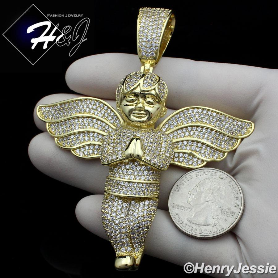 > Fashion Jewelry > Men > Pendants > MEN 14K GOLD FINISH ICED BLING OVERSIZE GOLD ANGEL WING PENDANT*BGP3