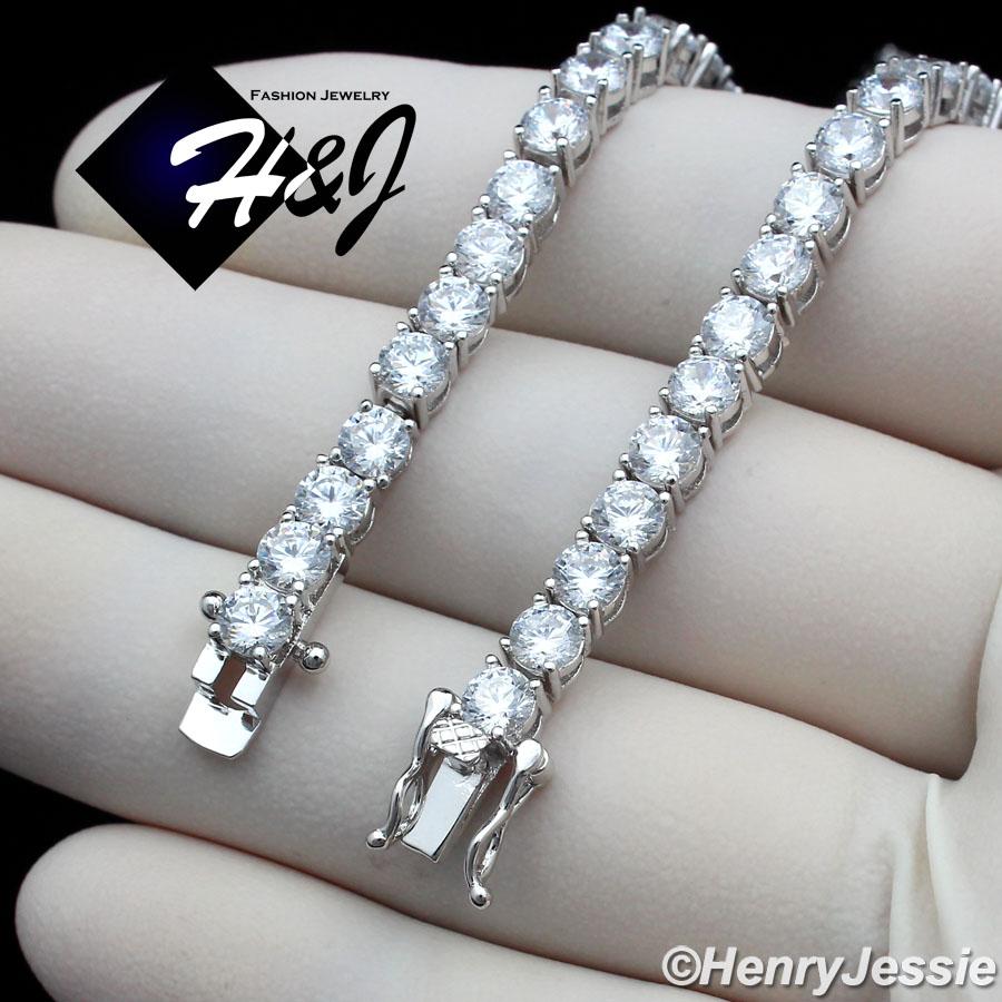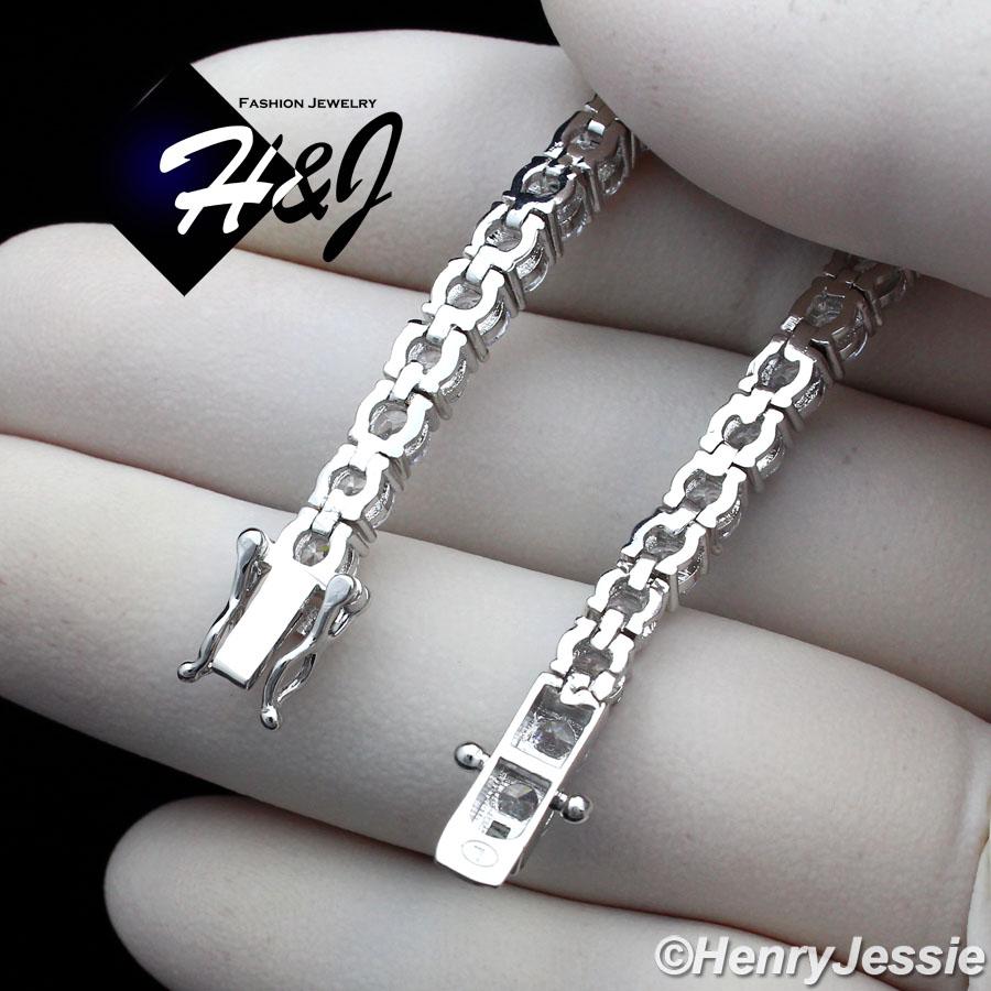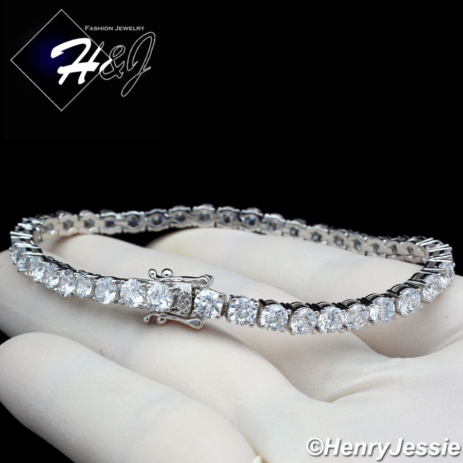 > BLING DIAMOND Jewelry > Men > Bracelets > 7"-8.5"MEN WOMEN 14K WHITE GOLD FINISH 4MM ICED 1 ROW SILVER TENNIS CHAIN BRACELET*BSB2