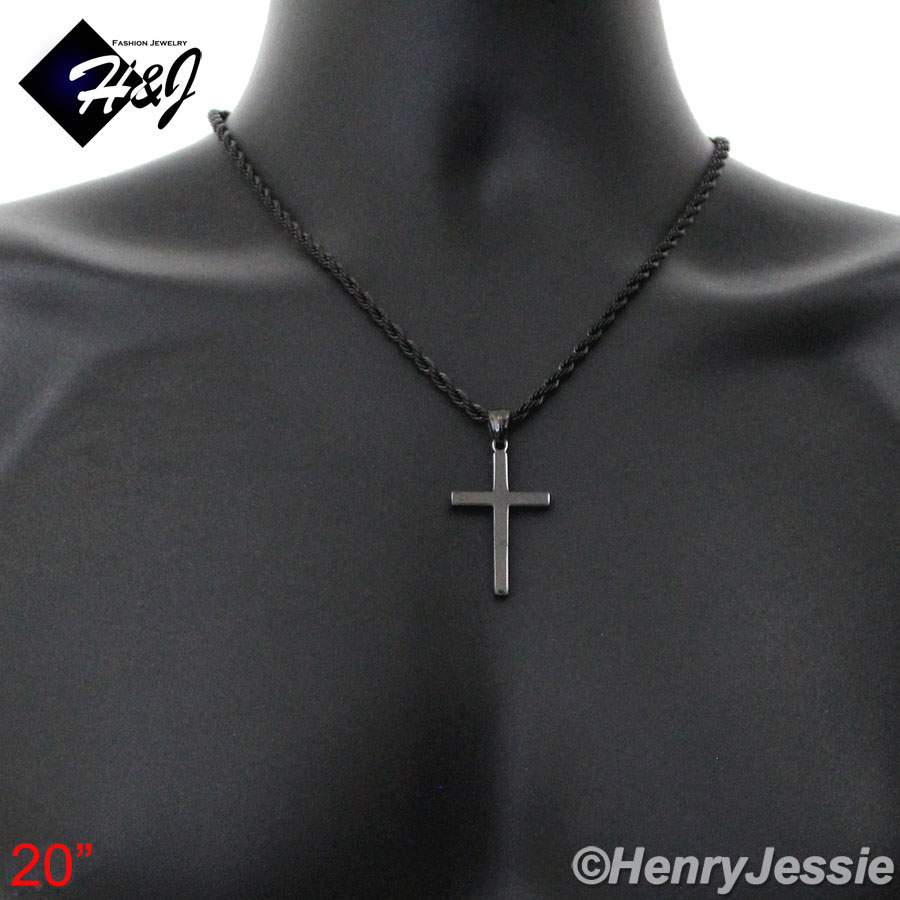 > Stainless Steel > Men > Necklace Pendant SETS > 20"MEN Stainless Steel 3mm Black Rope Chain Necklace Plain Simple Cross Pendant*BP29