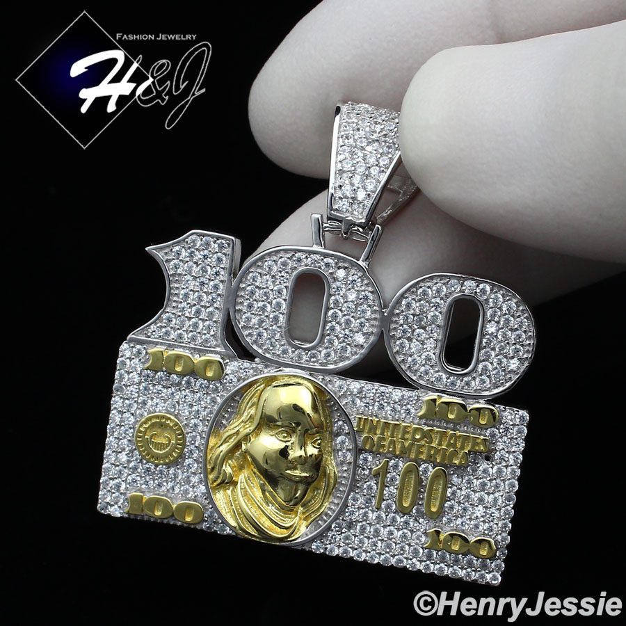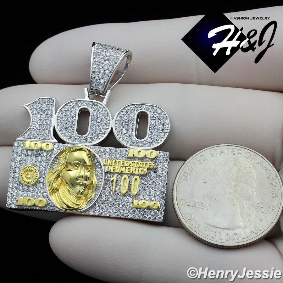 > Sterling Silver > Men > Pendants > MEN 925 STERLING SILVER LAB DIAMOND ICED BLING 100 DOLLAR BILL PENDANT*SP227