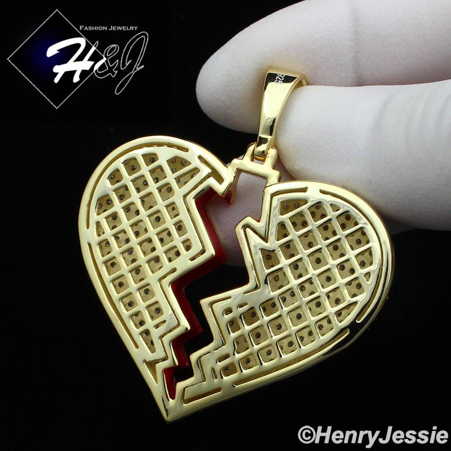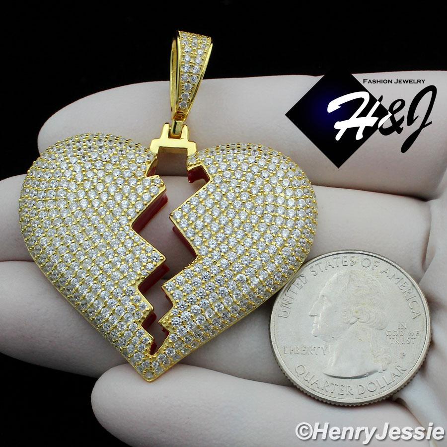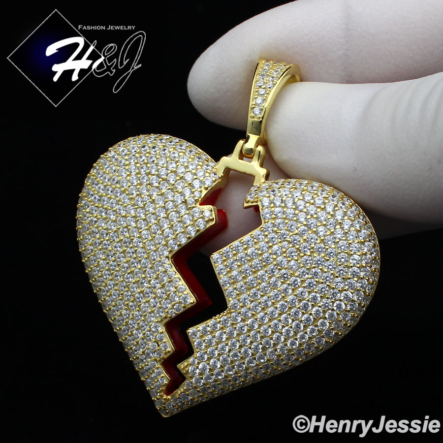 > Sterling Silver > Men > Pendants > MEN 925 STERLING SILVER LAB DIAMOND ICED BLING GOLD BROKEN HEART PENDANT*GP235