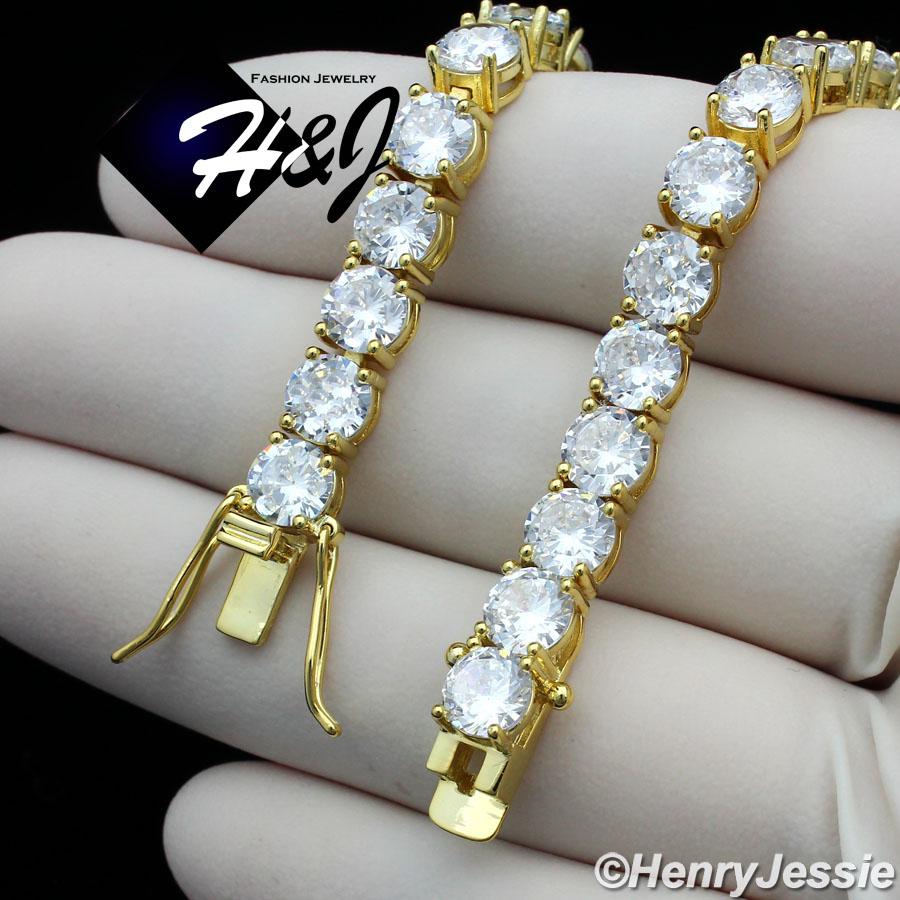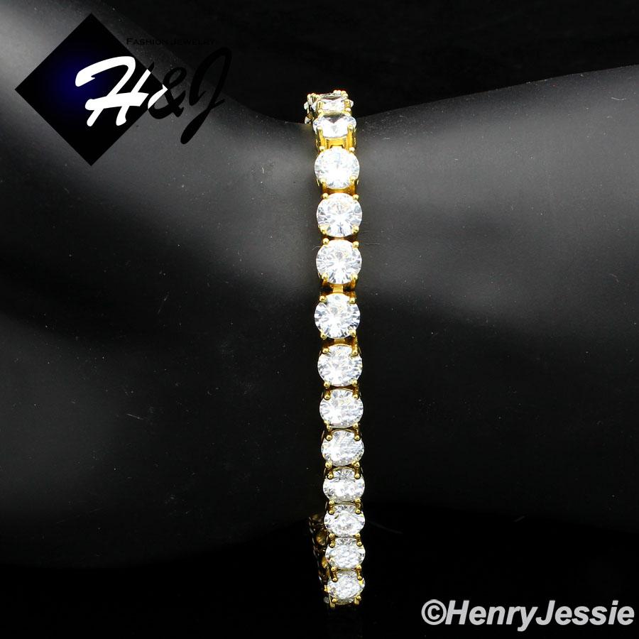 > BLING DIAMOND Jewelry > Men > Bracelets > 8.25"MEN 14K GOLD FINISH 6MM GOLD ICED 1 ROW TENNIS CHAIN BRACELET*GBB3