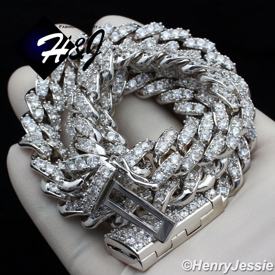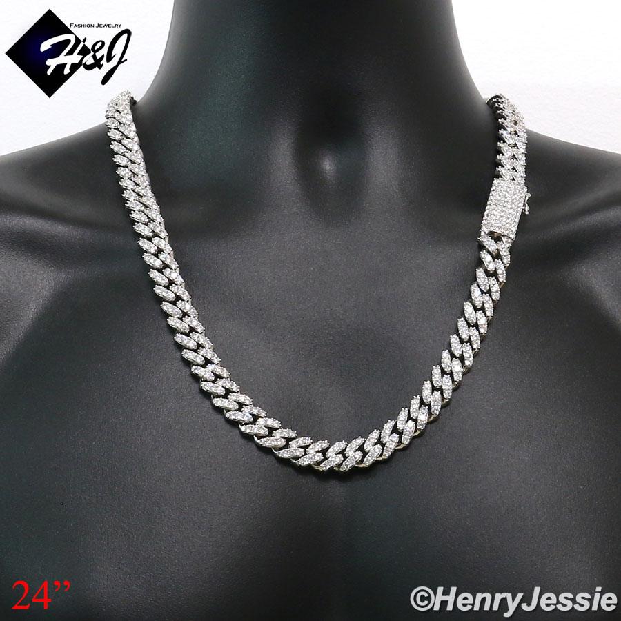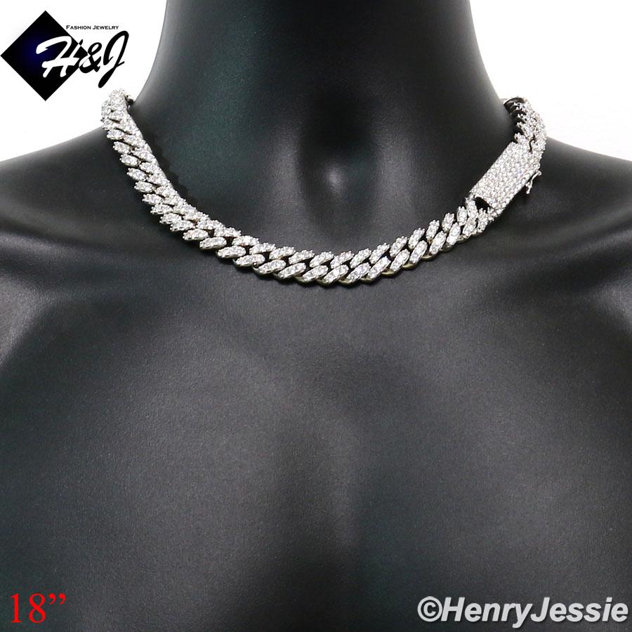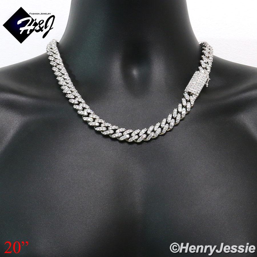 > BLING DIAMOND Jewelry > Men > Necklaces > 18"-24"MEN 14K WHITE GOLD FINISH 12MM SILVER ICED BLING PRONG SET CUBAN CURB CHAIN NECKLACE*BN5