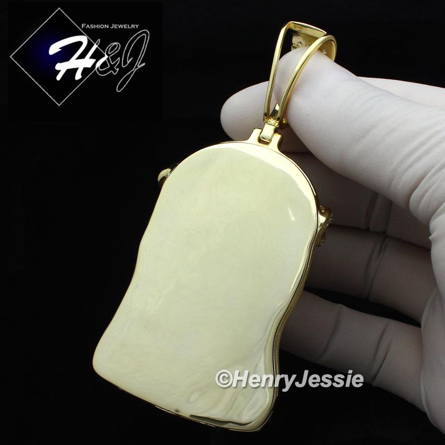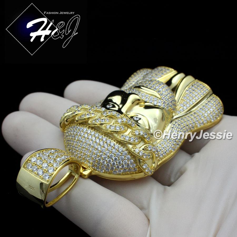 > Sterling Silver > Men > Pendants > MEN 925 STERLING SILVER LAB DIAMOND ICED BLING BIG GOLD JESUS FACE CHARM PENDANT*GP242