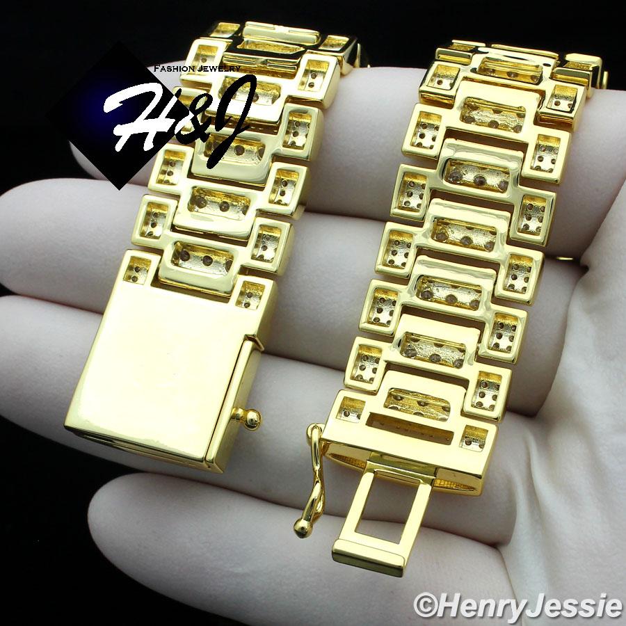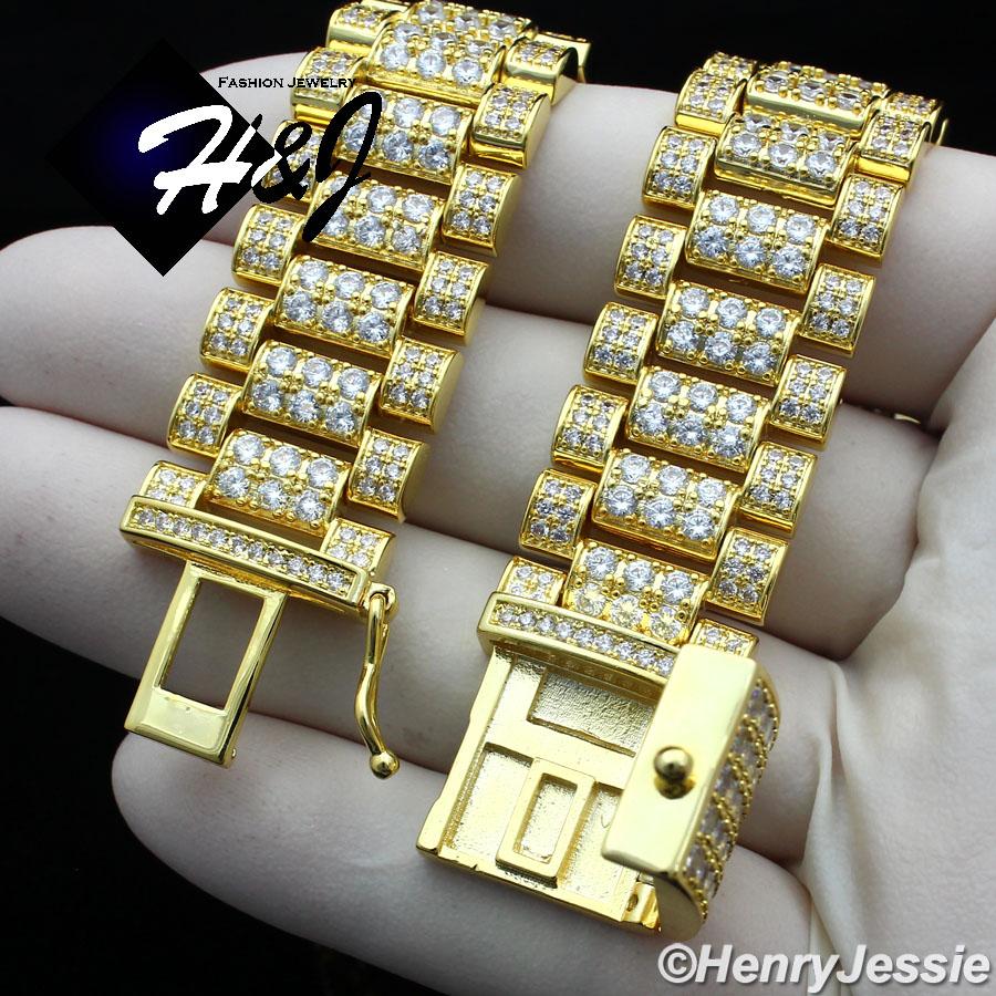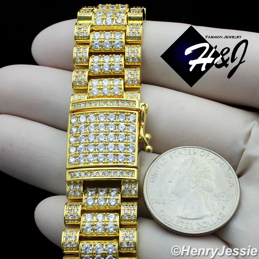 > BLING DIAMOND Jewelry > Men > Bracelets > 8.5"MEN 14K GOLD FINISH 18MM FULL LAB DIAMOND ICED BLING GOLD WATCH BAND LINK BRACELET*BGB6