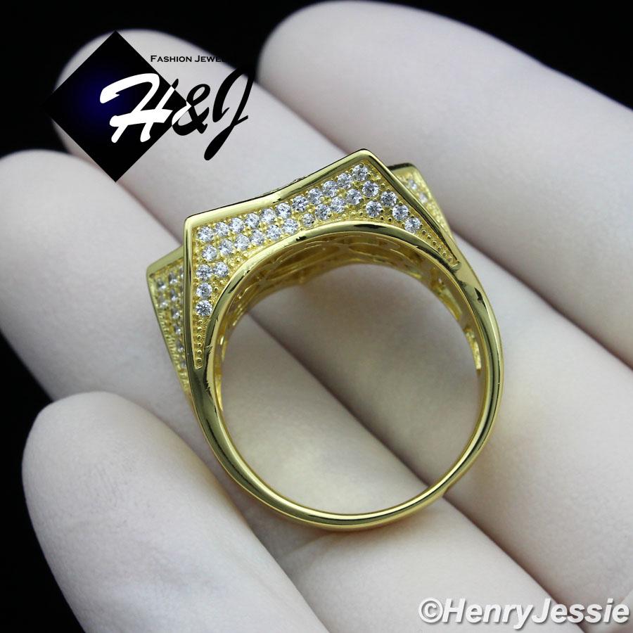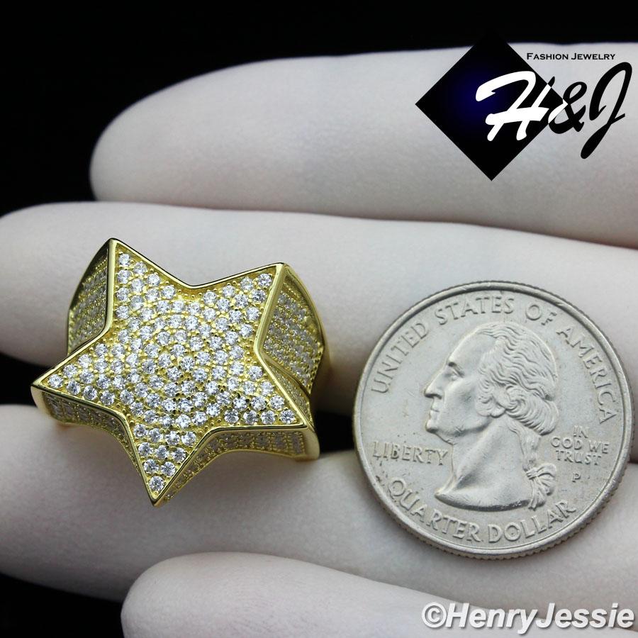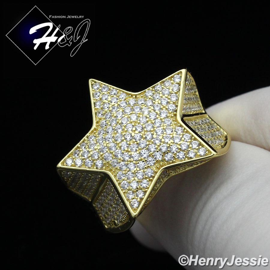 > Sterling Silver > Men > Rings > MEN 925 STERLING SILVER LAB DIAMOND ICED BLING GOLD 3D STAR RING*GR107